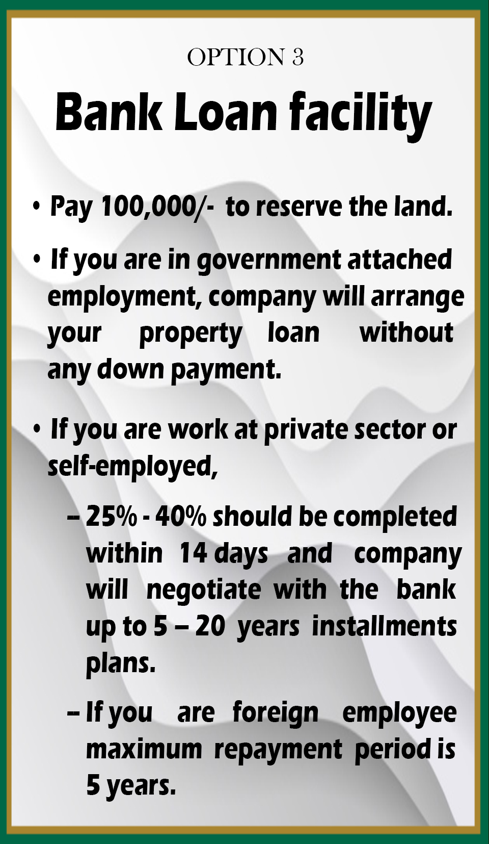 ඉදිරියට ඒමට පවතින ඉඩම් ව්යාපෘති