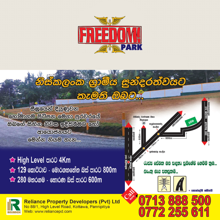 • 600m to Horana - Maharagama (280) Bus Road & 800m to Kottawa - Moragahahena Bus Road .